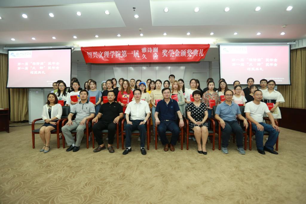 6月5日下午,第一届“雅诗澜奖学金”、第一届“久铃奖学金”颁奖仪式在学校图书馆报告厅举行。副校长张宏,绍兴柯桥立桐布业有限公司董事长邹胜平,绍兴久铃驾校校长、校友商倪锋,以及对外联络处、学工部、纺织服装学院负责人,获奖学生和师生代表近100人参加颁奖典礼。