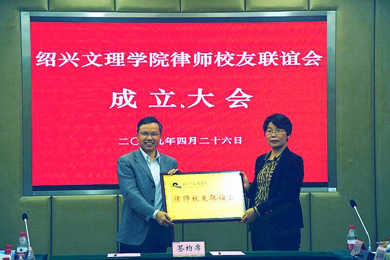 4月26日下午,我校律师校友联谊会成立大会在铁城科教馆一楼会议室举行。校党委副书记、校友总会会长沈赤,校友总会副会长杨大明,绍兴市律师协会会长楼东平以及律师校友代表、学校相关部门负责人、师生代表等60余人参加会议。