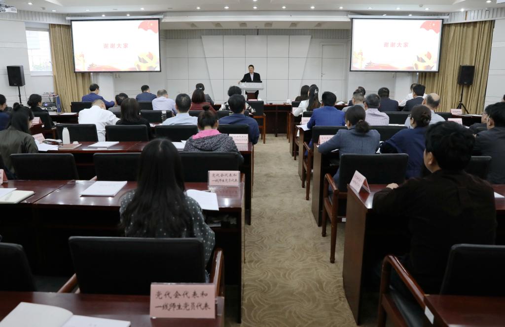 4月17日下午,学校在图书馆一楼报告厅召开2018年度二级党组织书记抓党建工作述职评议会。校领导沈赤、郝敬习、柯羽、张宏、黄坚,校党委委员宣绍龙、陈均土,党群部门负责人,全体二级党组织书记,各二级党组织党代表和一线师生党员代表出席会议。校党委副书记沈赤主持会议并作点评讲话。