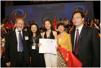 2008年7月,指挥文理学院合唱团获奥地利第五届世界合唱比赛“女声组金牌第一名”获冠军。