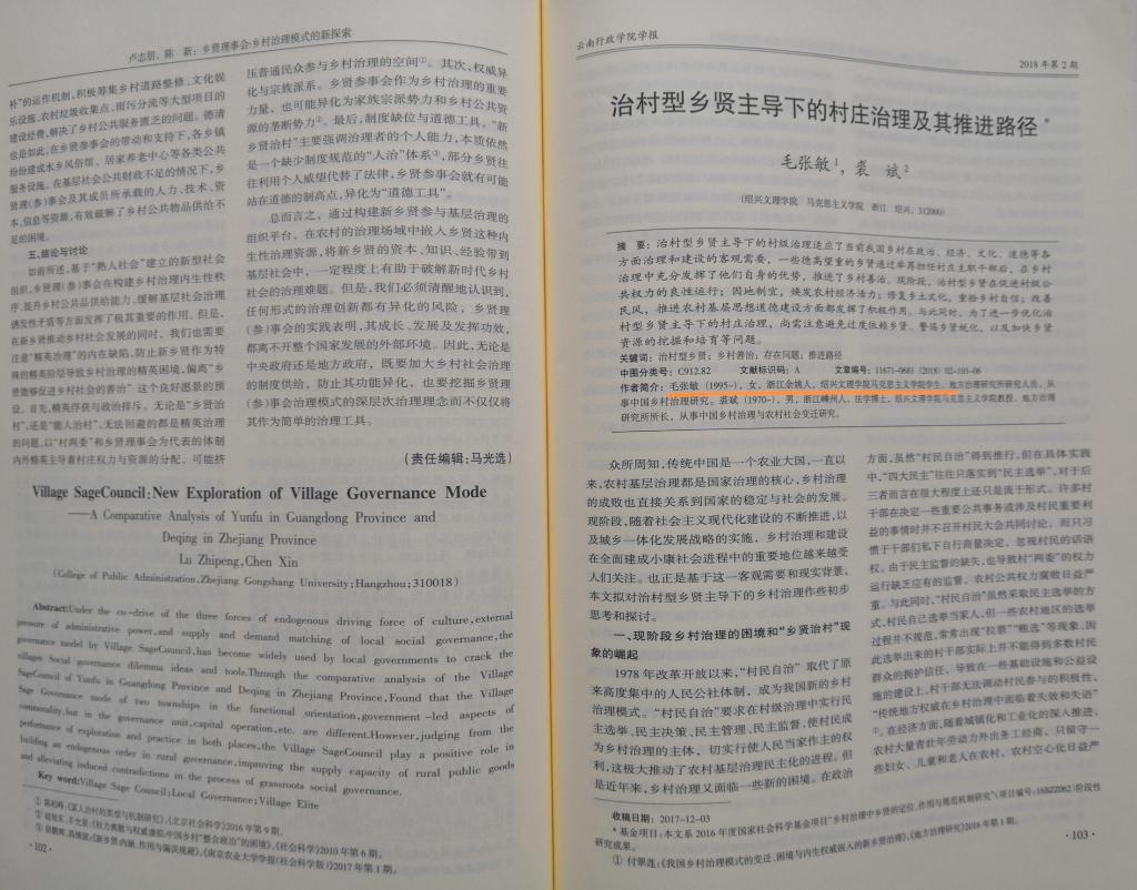 如何将“能人治村”推进到“贤人治村”?基于实证研究中发现的新情况,裘斌于2015年撰写了《“乡贤治村”与村民自治的发展走向》等论文,受到《社会科学报》等重点推介。在此基础上,2016年裘斌申报了国家社会科学基金“乡村治理中乡贤的定位、作用及其规范机制研究”,并获准立项。这是学校马克思主义理论学科首次获得国家社会科学基金项目,也是马克思主义学院成立以来的首个国家级研究项目,为马克思主义学院规划的“顶天立地”研究框架开了个好头。