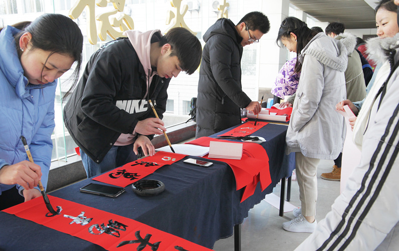 据悉,本次活动共送出300副春联,300张“福”字。兰亭书法艺术学院的刘婷、邱超老师介绍,举办本次活动,一方面是为了增加节日气氛,让同学们感受到新年的气息;另一方面,是为了传播传统文化,弘扬书法艺术。