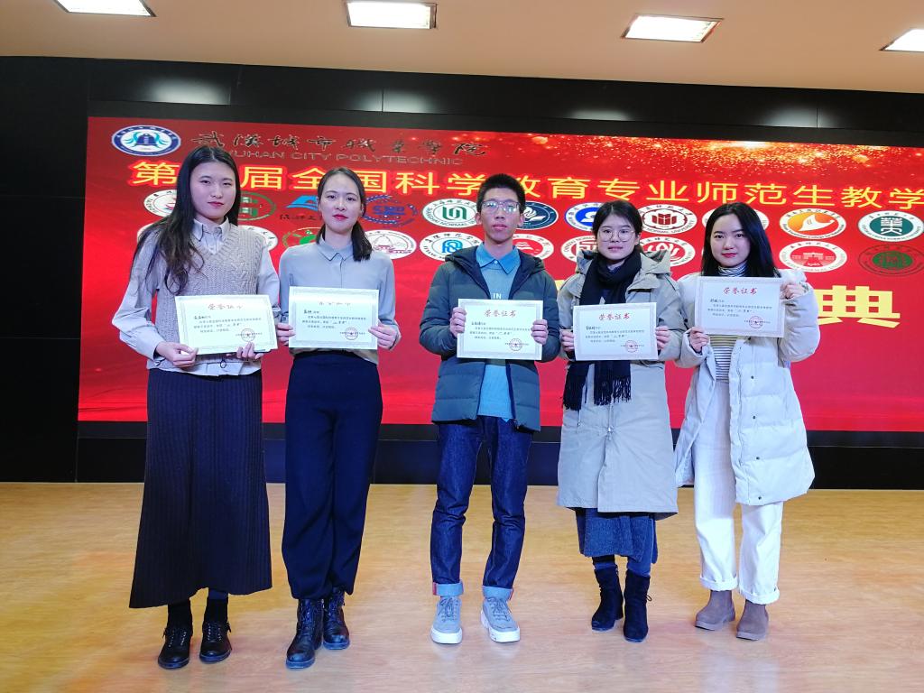 12月7日-12月10日,由中国青少年科技辅导员协会主办的“第七届全国科学教育专业师范生教学技能创新展示活动”在武汉举行。我校生命科学学院2015级科学教育专业5名学生,在指导教师张建龙、张艳华和叶建平的精心指导和集中强化培训后,代表我校参赛,经大赛评审委员会专家评审,金晓峰同学荣获初中组一等奖,金温如、盛琳和舒妮同学荣获初中组二等奖,管锭婷同学荣获初中组三等奖,我校荣获优秀组织奖。