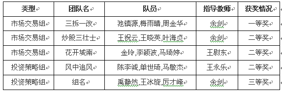 浙江省第四届大学生证券投资竞赛决赛近日在浙江工业大学成功举办,我校12支队伍共获得5项奖项,获奖数量为参赛以来最高,斩获一等奖1项,获奖率高于全省平均水平,成绩突出。本届比赛共有来自全省67所高校的878支团队参赛,经过实测、网络评审、现场答辩等环节,共评出省一等奖58项、二等奖106项、三等奖179项。 获奖名单如下: