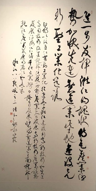 近年,张泓越发感觉到书法作为最具代表性的优秀传统艺术,在新时代新时期文化建设和海外优秀传统文化传播中举足轻重的地位。2018年,他受邀参加了如中国书法家协会协会“永远的丰碑”全国书法名家纪念周恩来诞辰120周年作品展、浙江省文联“复兴之路——庆祝改革开放40周年”浙江书坛精英主题创作(书写“八八战略”)等展览,参展作品从文本的择取、表现手法、气象的把握等方面富有前所未有的新鲜感和挑战性,这些都不同古人经典的作品,为他的创作打开了一个新的角度和模式。2017年,他赴新西兰开展“兰亭书法学堂”教育教学工作三个月,期间受到了新西兰国家元首的接见,举办了“从兰亭到奥克兰-张泓书法作品展”,展览圆满成功,在异国他乡“以书会友”,传播传统文化的同时更让他感受到了书法艺术的魅力。他说:“书法是经典的、古老的,但作为我们后来者,更应该将手中之笔与时代紧紧相连,让她在我们这样伟大的时代焕发新的生命力。”