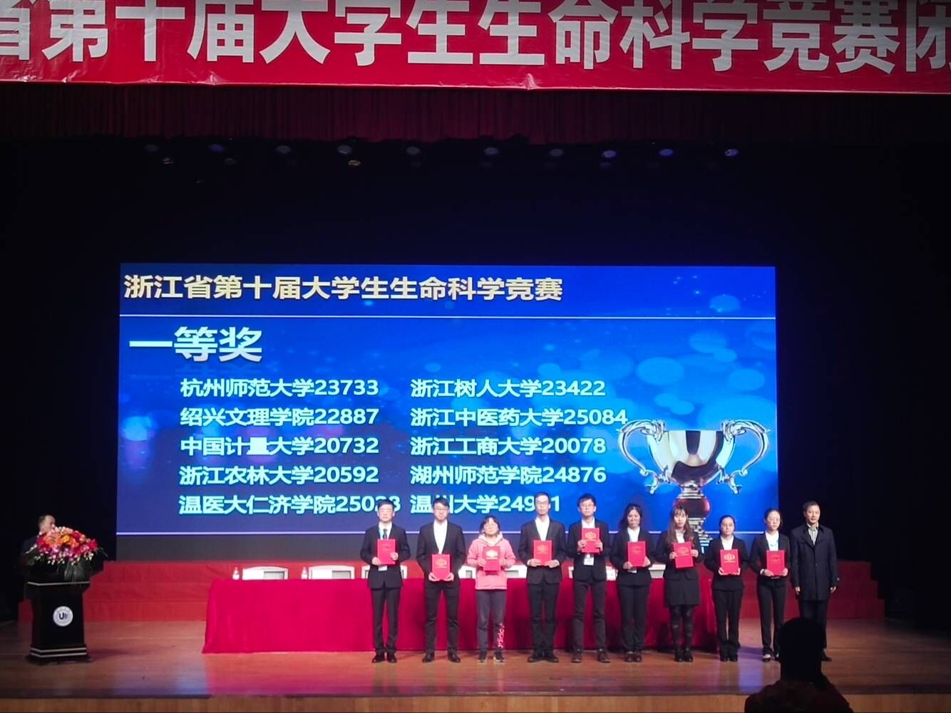 浙江省大学生生命科学竞赛是省内最有影响力的学科竞赛之一。本次竞赛历时7个多月,共有普通本科院校、独立学院和高职院校40个学校、962支队伍参赛。其中有30所高校100件作品经过初赛进入到现场答辩环节,是竞赛举办以来参加现场决赛高校最多的一次,也是第一次打破普通本科院校、独立学院和高职院校之间壁垒,获奖比例大幅下降的第一年。经过38位专家评审,最终评出一等奖50项、二等奖100项、三等奖200项和优秀组织奖10名。