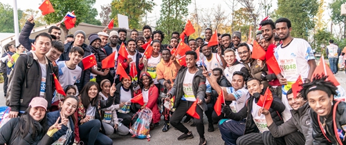 我校作为此次越马21个方阵中的第二方阵(第一方阵为“奔跑吧中国”方阵),由42个国家和地区的国际留学生、80余名教师组成。早上5点20分,我校师生就身着统一服装集体前往比赛起点——绍兴市奥体中心,7点30分,在校旗的引领下,我校运动员精神饱满,沿着风景秀丽的解放大道奋力开跑,在锻炼身心的同时,还尽情领略了古城绍兴的旖旎风光。