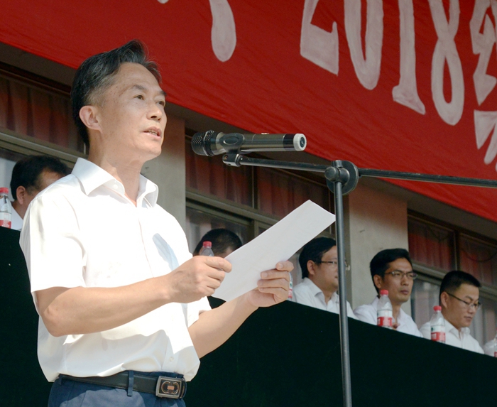 王建力代表学校党委行政,向浙江陆军预备役师官兵表示了最衷心的感谢和最崇高的敬意!向2017、2018级学生顺利完成军训任务表示热烈的祝贺!他希望同学们以这次军训为契机,继续保持军人雷厉风行的优良作风,坚定理想信念,敢于面对挫折,勤奋学习,勇攀高峰,勇做时代的弄潮儿!