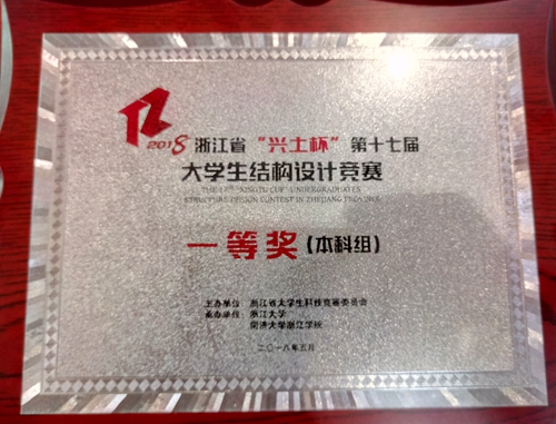 5月11日至13日,浙江省第十七届 “兴土杯”结构设计竞赛在同济大学浙江学院举行。全省48所高校的100支队伍参加了比赛,此次竞赛的赛题为“施工平台结构设计”。我校土木工程学院大学生结构设计竞赛基地卢锡雷、梁超峰、姜屏、沈一明老师共同指导的2支参赛队伍双双获得一等奖。“擎天柱”(队员:赵容舟、张家丹、周丹)和“柱中柱”(队员:朱泽威、朱赣懿)2支队伍的参赛作品均实现了以80g模型质量承受145Kg荷载的竞赛要求,比赛总成绩名列前茅。