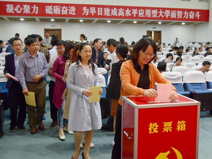 4月20日至21日,学校七届一次教职工代表大会暨工会会员代表大会在铁城科教馆报告厅胜利召开。校党委书记汪俊昌发表讲话,校长王建力作题为《凝心聚力 砥砺奋进 为早日建成高水平应用型大学而努力奋斗》的学校工作报告。