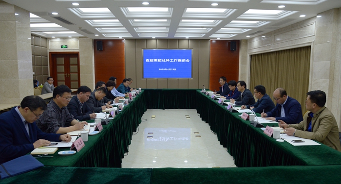 4月19日下午,省社科联在我校召开了在绍高校社科工作座谈会。省社科联党组书记、副主席盛世豪,党组成员、秘书长谢利根,科研管理处处长陈名义,绍兴市社科联党组书记柳巨波,副主席叶红军,以及在绍各高校社联主席等参加座谈。绍兴市委宣传部副部长黄伟英主持会议。