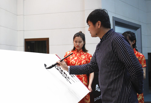 来自兰亭书法艺术学院的李继振,一席长衫,温文尔雅,他坚持“以学养书”,立志成为一名“学者型书法家”。情绪低落时,在老师的谆谆教导下他重新振作,作品多次获得国内大奖,并被艺术馆、文化馆等机构收藏。展示现场,李继振泼墨挥毫,用毛笔写下了自己对“追求卓越”的深切感悟。