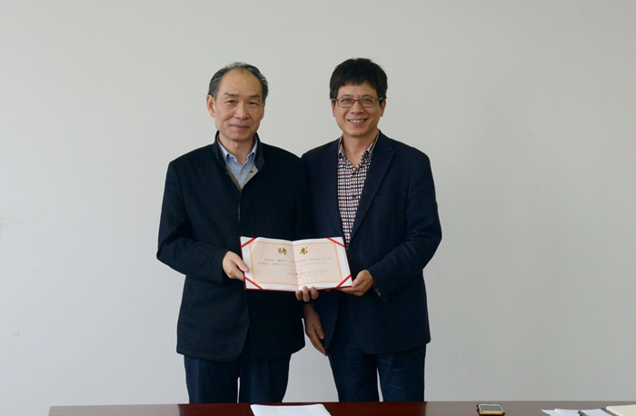 校长王建力向吴先宁校友颁发聘书。