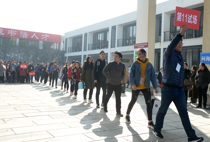 3月10日上午,我校2018年书法学专业招生校考如期举行。今年校本部(兰亭)校考参加人数980人,学校在山东、山西、湖南设立的书法学专业校考考点,也有2171名考生参加考试,总计3151人报考。今年的招生计划是80人,竞争异常火爆。