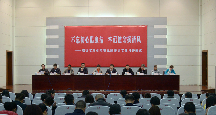 12月8日上午,以“不忘初心倡廉洁,牢记使命扬清风”为主题的校第九届“廉洁文化月”活动在铁城科教馆报告厅举行开幕仪式。省委教育工委委员,省纪委、省监察委派驻省教育厅纪检监察组组长郭丽华,省纪委、省监察委派驻省教育厅纪检监察组副组长黄根来,绍兴市纪委宣传部部长宋越琳应邀出席会议。学校党政班子成员、全校科级及以上干部、校纪委委员、各分党委(党总支)委员、二级纪委委员(纪检组成员)、特别监察员、特邀监察员、民主党派负责人出席大会。校纪委书记邱卫东主持会议。
