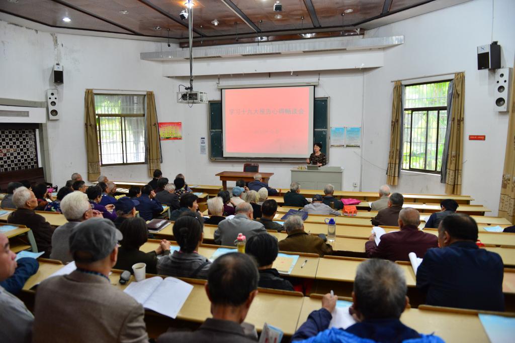 10月20日上午,在河东老图书馆,离退休党委举行了学习十九大报告心得畅谈会。近百名离退休老党员参加了本次会议,其中不乏90高龄的老党员的身影。