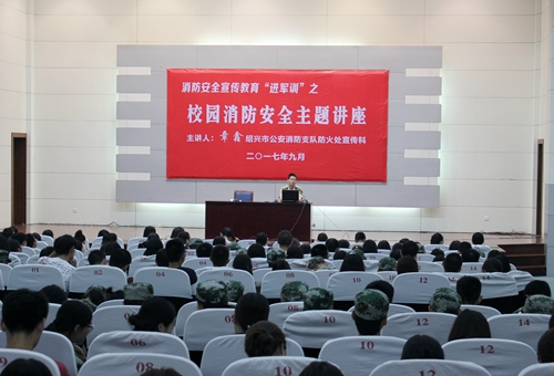 “同学们,如果发生火灾,我们该怎么办啊?”“打119报警!用灭火器来灭火!” 9月6日,学校开展消防安全宣传教育“进军训”之校园消防安全主题讲座,绍兴市公安消防支队宣传科科长章鑫采用问答的方式用简单易懂的语言讲解了学校、家庭及生活中常见的消防安全知识,并结合火灾案例对日常防火、灭火、报警、逃生等技能进行了言传身教。学生们积极提问,章鑫科长耐心地一一给予解答。