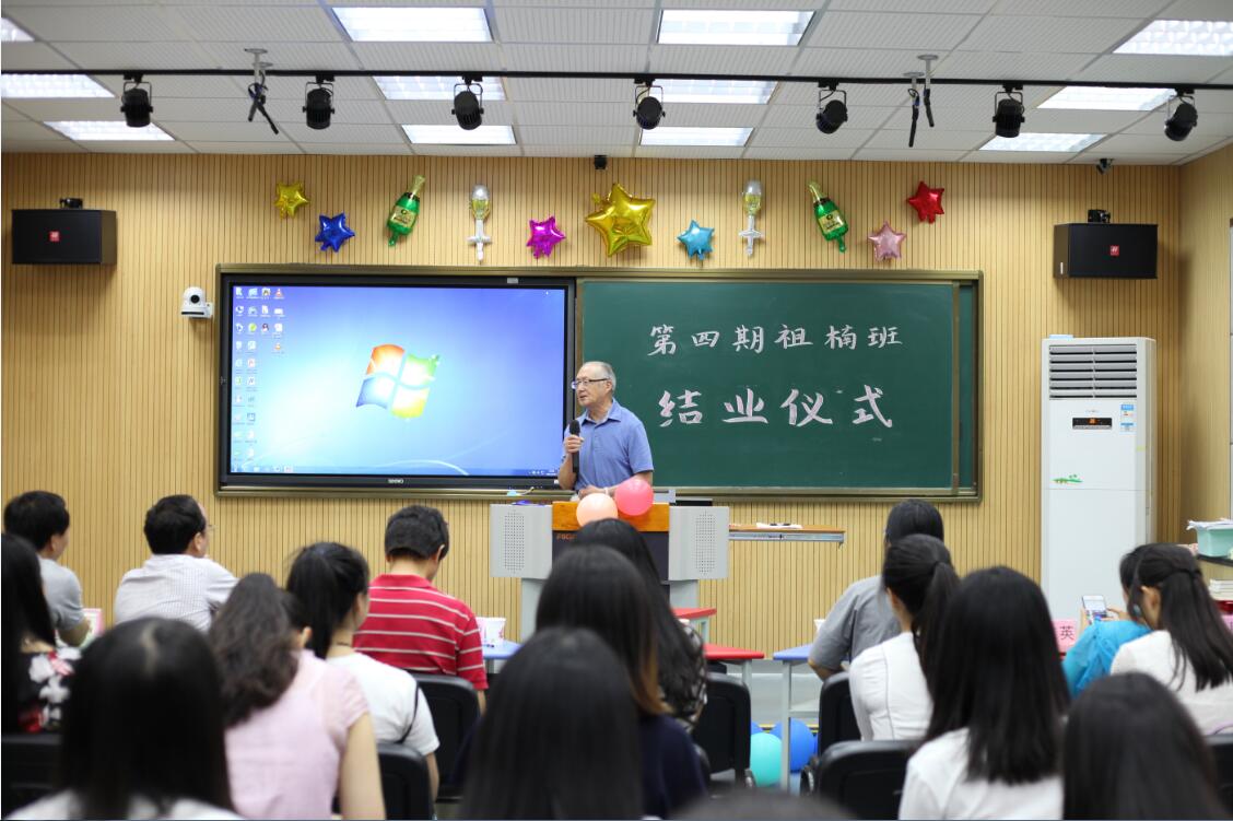 自从2013年开设“祖楠班”以来,老校长陈祖楠始终对“祖楠班”倾情关注。在此次结业典礼上,他又给临行前的学子上了最后一课。他说,“祖楠班”班歌给了他很大启发,尤其是“卓越,卓越,为卓越而追求,在追求中成长”这句歌词,包含了对万千学子的殷切期盼。他肯定了大家取得的成绩,更希望每一位从“祖楠班”结业的学员踏上工作岗位之后,都能秉承“我来精神”,展现“祖楠班”学子的精神风貌,不断践行“追求卓越”的理念。