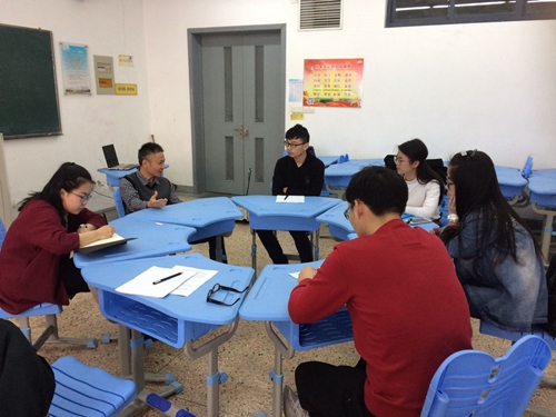 图为吴培炯副教授在指导模拟教研小组