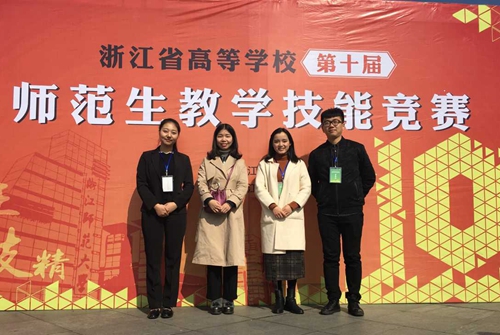 英语131杨文斌、132何丹丹获得浙江省高等学校第十届师范生教学技能竞赛一等奖,英语131朱丽慧获得二等奖