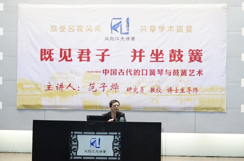 4月6日晚上,中国社会科学院文学研究所首席研究员、中国社会科学院研究生院文学系教授、中国古典文学专业博士生导师范子烨做客风则江大讲堂,作题为《既见君子  并坐鼓簧——中国古代的口簧琴与鼓簧艺术》的讲座。