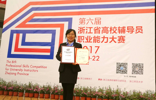 据悉,王婷还将代表我校参加浙江省高校辅导员协会2017年集中轮训,集体备战华东赛区辅导员职业技能大赛。