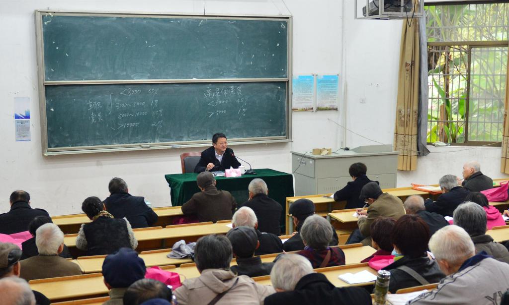 沈赤简要介绍了六中全会的召开背景和基本情况,重点围绕六中全会作出的完成了“四个全面”战略布局、正式提出以习近平同志为核心的党中央、制定了《关于新形势下党内政治生活的若干准则》《中国共产党党内监督条例》三大贡献作了全面解读。同时,他还传达了习近平总书记在全国高校思想政治工作会议上的讲话精神,希望离退休老党员们能结合学习,深刻领会习近平总书记对高等教育事业的要求和期望,进一步提高认识,加深理解。