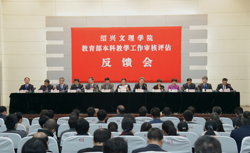 教育部审核评估专家组全体成员,浙江省委教育工委委员、省教育厅副厅长朱鑫杰,绍兴市人民政府副市长丁晓燕,浙江省教育评估院院长施建祥,浙江省教育厅高教处副处长王国银,绍兴市教育局副局长钱伟平,校领导汪俊昌、叶飞帆、唐和祥、沈赤、杜时贵、华小洋、邱卫东、杨大明、寿永明、柳国庆、宣绍龙出席会议。