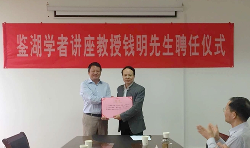 钱明研究员在聘任仪式上动情地谈到他在阳明学研究领域耕耘数十年的心得和诸多真知灼见。他指出,王阳明是中国古代文化中与孔子、朱熹并立的,在世界范围内具有重大影响和强大辐射力量的最重要文化名人。他表示,近几年来,王阳明研究遇上了前所未有的发展机遇,开展得如火如荼,自己的根在绍兴,此次受聘为“鉴湖学者”讲座教授,将扛起大旗,为绍兴的阳明学研究作出应有贡献。