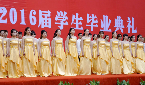 ,2016届学生毕业典礼在河西校区体育馆隆重举行,学校对全体毕业生送上祝贺和祝福。学校党政领导班子成员,各二级学院主要负责人,各职能部处、直属单位负责人,校学术委员会成员、校学位评定委员会成员,全体毕业班班主任、辅导员和非毕业生学生代表以及部分毕业生家长亲友出席毕业典礼。典礼由校党委副书记沈赤主持。毕业典礼在雄壮的国歌声中开始。