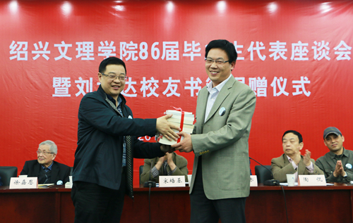 会上,校党委副书记沈赤介绍了学校建设发展情况,并向各位校友通报了“十三五”学校的主要工作。活动首先进行刘孟达校友书籍捐赠仪式,政史86届刘孟达校友向母校捐赠书籍800余册,以支持母校校友书架建设,图书馆馆长舒炎祥代表学校接受捐赠。同时刘孟达校友向曾经学习过、工作过的法学院赠送最新力作《蠡城物语》,向本部8大书院的学生代表赠送了书籍。刘孟达校友动情地回忆了当初的校园生活,以及对恩师开导和鼓励的怀念。他说,83年入校求学,86年留校工作,91年离开母校,在母校留下了太多情感。今天参加这个座谈会,内心十分感动、感激和感慨。30年座谈会十分有意义,既能分享到同学的成功,也能听到同学的心声。他说,自己的座右铭是“用心读书,尽心做事,真心待人”,业余时间最大的兴趣爱好就是读书写文章,并认为大学是最好的读书时间,自己就是在大学培养的读书兴趣。最后他表示,愿意尽已所能,支持母校建设。