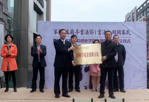 活动中,校党委副书记唐和祥代表学校签约,叶飞帆校长和丁海土董事长为创业学院金德隆分院授牌。