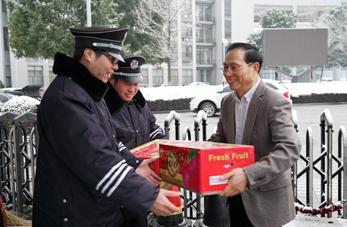 2月1日上午,正值农历小年,副校长杜时贵走访慰问寒假在岗职工,党(校)办、工会及相关部门负责人陪同慰问。