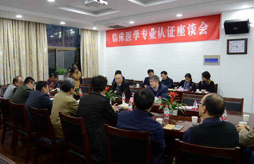 医学院领导、教学工作委员会和督导委员会座谈会上,认证专家对我校医学院的管理机制、医学人才培养体制、学校和医学院教学委员会、教学督导委员会和医学指导委员会的工作等进行了询问;就我校医学院如何协调统筹医学基础教育与临床医学教育,如何做好顶层设计,理顺学校与医学院的关系;如何突破瓶颈,形成基础教学与临床教学有机结合的一体化模式;如何加强教学督导,切实提高教学质量等情况和与会者进行讨论。行政管理干部座谈会上,认证专家就医学人才培养方案制订、临床医学部设置、学校对医学院的发展规划、医学科研推动与学科建设、财务经费预算与投入、医学院师资力量的培养与提高、医学教育管理保障、医学教育人才培养、实践教学、学生管理等方面工作进行了提问,相关职能部处负责人作了详尽的回答和汇报。低年级学生座谈会上,认证专家就教育教学方法改革、师生互动交流、学生科研、社会实践、医学人文、临床实践、教学测评及社团活动等与学生学习、生活密切相关的话题进行了深入细致的座谈交流。