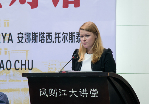 “托尔斯泰是俄国文学同样也是世界文学的化身,虽然见不到本人,但是我们同样可以从他们后代身上感受到其本人的精神风貌。”上海外国语大学教授、文学研究院院长郑体武教授对此次活动给予高度评价。他指出,鲁迅不仅欣赏托尔斯泰的文学,并在翻译和学习俄国文学时仍不忘维护、发扬、挖掘中国文化。与此同时,郑教授呼吁在座学生,在鲁迅精神的感召下,积极投身文学研究和创作中,尤其是对俄国文学和鲁迅的研究,继承并发扬优秀的文学艺术。