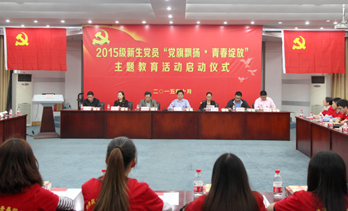 10月12日下午,我校2015级新生党员“党旗飘扬•青春绽放”主题教育活动启动仪式在图书馆报告厅举行。校党委副书记钱水祥出席仪式,相关二级学院副书记、组织员和全体2015级新生党员等70余人参加活动。启动仪式由党委组织部副部长王嫣主持。