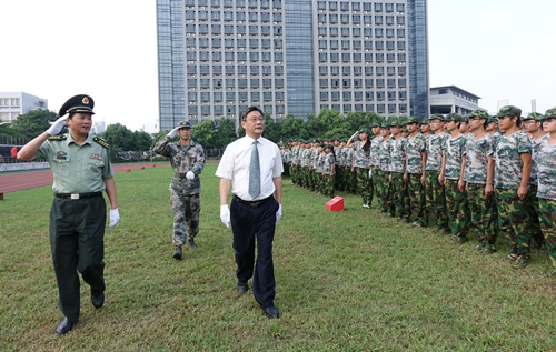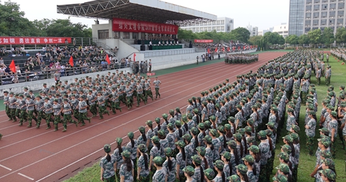 9月7日下午,2014级学生军训闭营式在南山校区田径场隆重举行。经过为期10天的严格军事训练,3783名参训学生着戎装,飒英姿,以饱满的精神面貌接受检阅。