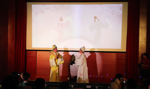 此外,绍兴艺术学校也带来了中国版《罗密欧与朱丽叶》——《梁祝》的节目选段《十八相送》和《两只蝴蝶》,两个节目穿插其中,莎剧与越剧有机融合,西方文化与东方文化的碰撞,让现场观众大饱眼福。尤其是在罗密欧与朱丽叶双双殉情之后,绍兴艺术学校的学生演绎越剧“化蝶”,才子佳人化变成“两只蝴蝶”谱写了中西经典爱情故事的浪漫结局,让观众无限感怀。