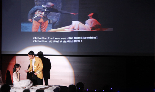 大赛首先由元培学院英语1201班带来莎士比亚改编戏剧《奥赛罗》。他们凭着流利地道的英语口语、精湛的演技和纯熟的肢体语言,赢得了现场一阵又一阵的掌声。来自英语1202班的同学也不甘示弱,将中英文诗歌﹑影子舞﹑法语版歌剧唱段融入传统莎剧剧本中,带来了莎士比亚笔下最经典、最广为流传的传奇凄美爱情故事——《罗密欧与朱丽叶》。戏剧从罗密欧与朱丽叶在舞会上相识相爱的轻快唯美转入后来双双殉情的悲痛欲绝,演员们都倾情演绎,将戏剧表现得淋漓尽致。