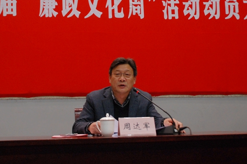校党委书记周达军作动员报告。周达军书记指出,今年的“廉政文化周”活动是学校党委深入贯彻落实党的十八届四中全会和十八届中央纪委四次全会精神的实际行动,是贯彻落实省、市纪委全会和全省教育系统党风廉政建设工作会议精神的具体举措,也是学校党委落实党风廉政建设主体责任的一项有效措施。本届“廉政文化周”活动的主题是“树清风正气、促转型发展”,指导思想和总体要求是深入学习贯彻党的十八届四中全会、十八届中央纪委四次全会精神,紧紧抓住落实党风廉政建设主体责任这个“牛鼻子”,强化“两个责任”,坚定不移把党风廉政建设和反腐败斗争引向深入,为全力冲刺绍兴大学创建工作和全面推进依法治校提供坚强有力保证。