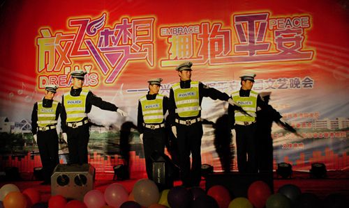晚会在激扬的开场音乐中拉开序幕,小品《都是广告惹的祸》、朗诵《关爱生命关注安全》等寓安全教育于其中的节目精彩呈现在广大师生员工面前。市公安局交警支队干警表演的《交通指挥操》、市公安消防支队官兵表演的小品《趣味班务会》及我校校卫队员寿荣新的独唱《草原之夜》将晚会推向高潮。公安干警和消防官兵还积极与台下师生员工互动,他们采用问答的形式普及交通安全、消防安全知识,获得观众的广泛好评。