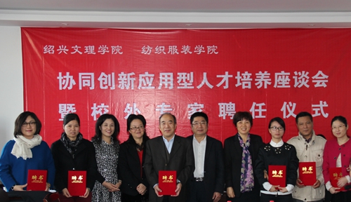 11月15日上午,纺织服装学院协同创新应用型人才培养座谈会暨校外专家聘任仪式在志廉楼324会议室召开。校纪委书记邱卫东、地方合作处负责人、教务处相关负责人出席会议。浙江新建纺织有限公司总经理朱鸣英、绍兴凯喜雅服饰有限公司总经理施黎明等47名来自纺织、服装、印染、化纤企业的老总和专家受邀出席,并被聘为学院应用型人才培养实践教学兼职教授。