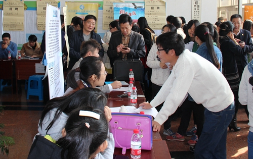 座谈会召开的同时,30多家企业在志廉楼大厅设点招聘,与学院开展2014年毕业实习与人才需求对接会。