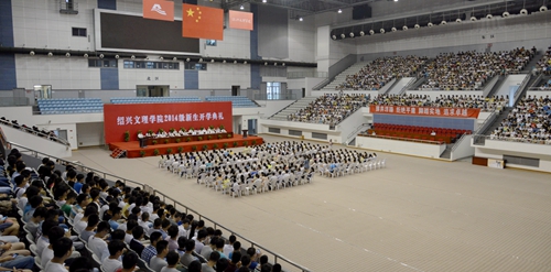 在介绍了学校的历史沿革和未来愿景之后,叶飞帆校长向在座新生抛出了一个令人深思的问题:读大学是要干什么?对此,叶校长表示,学校将致力于学术性、复合型、实践性的应用型人才培养。为了更好地培养应用型人才,学校今年最新修订完成了2014版人才培养方案,借助模块化的课程体系架构,在专业方向分流方面,给同学们提供更多的选择机会;同时设置了大量的辅修专业模块和选修模块,更加有利于同学们学习跨学科知识;同时,方案还加强了学时管理,努力帮助同学们提高学习效率,让大家把有限的时间和精力用在专业学习的刀口上,让每个同学在文理学院都有出彩的机会。叶飞帆校长满怀深情地说:“自从你们步入校门的那一天起,你们就和母校血脉相连了。希望你们继承和发扬母校修德求真的优秀品格,和母校共同成长,共享荣光。”