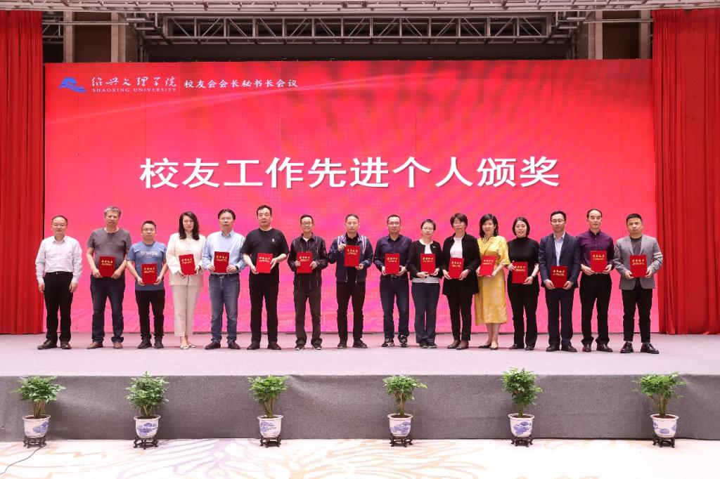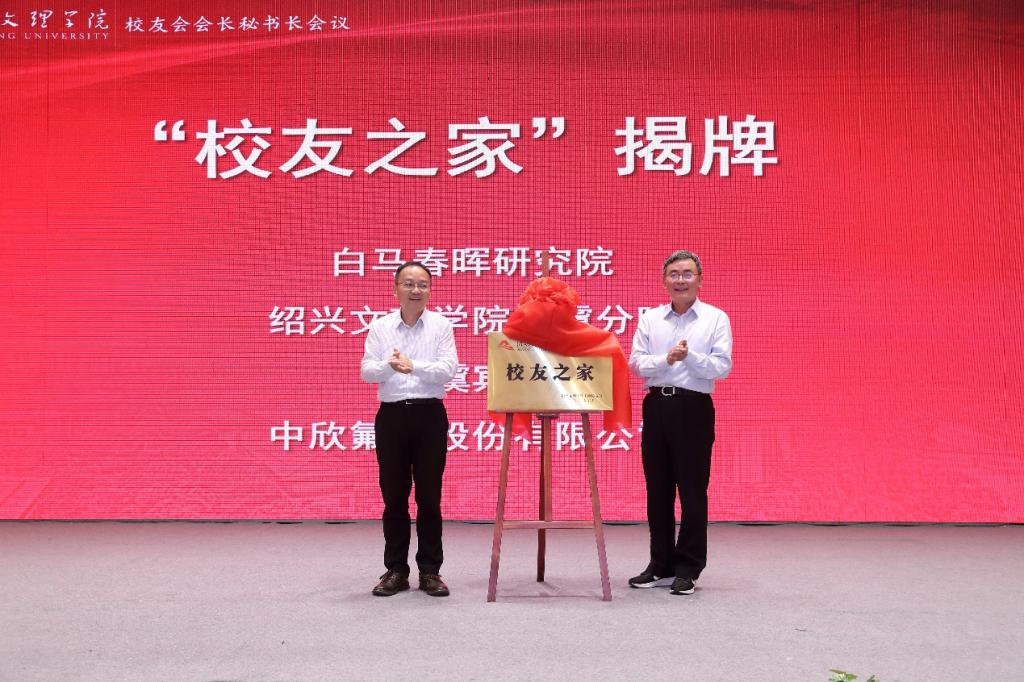 赵阳与上虞校友会会长、上虞区政协原副主席蒲伟明共同为上虞区“校友之家”揭牌,并为校友先进个人颁奖。