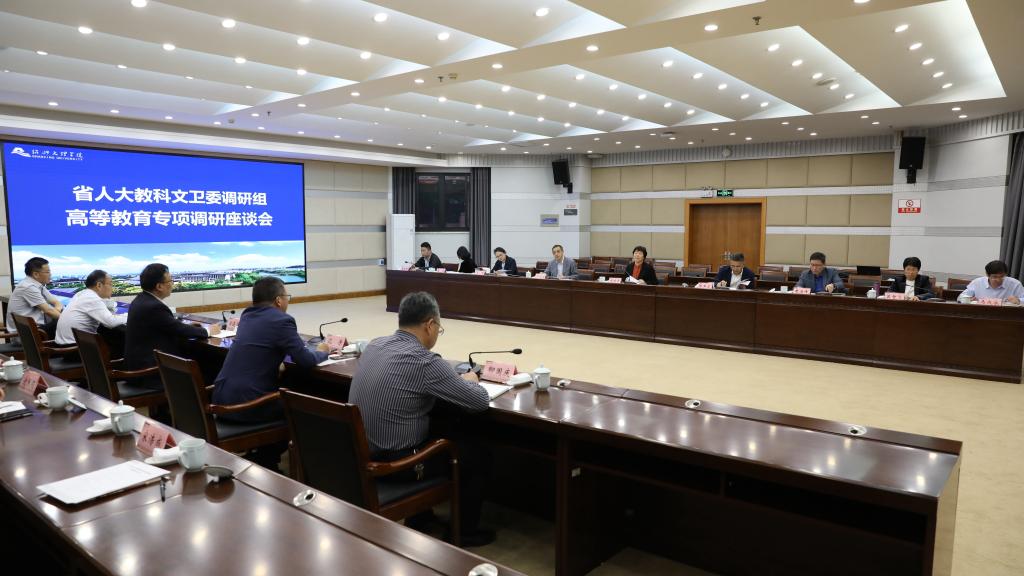 5月22日,省人大常委会委员、教科文卫委员会副主任委员钱晓芳率省人大教科文卫委调研组来我校开展高等教育专项调研。市人大常委会副主任马国灿等陪同调研。校党委书记汪俊昌,校长赵阳,党委副书记沈赤,副校长寿永明、柳国庆接待了调研组。办公室、组织部、发展规划处、人事处、研究生院、教务处、人文社科处、科技处等职能部处责人参加座谈。