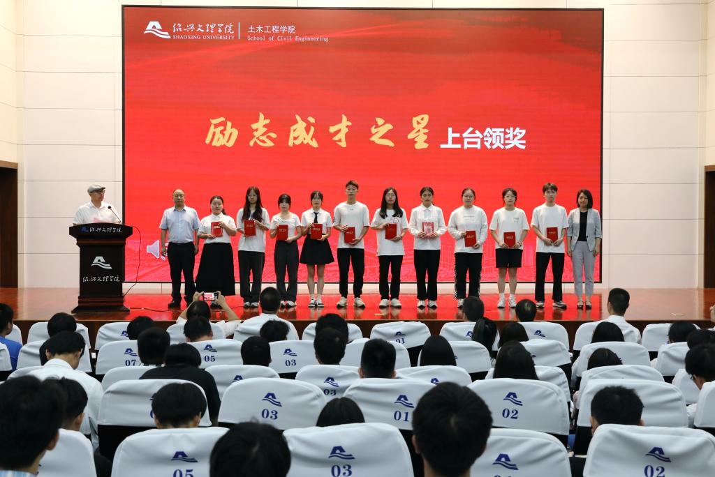 赵建明和李月红、沈赤、陈均土为获奖学生颁奖。土木工程191班谭幸淼等90多名学生分获“励志成才之星”“考研学习之星”“科研竞赛之星”“创新创业之星”“体育运动之星”及“文明寝室之星”等奖项。