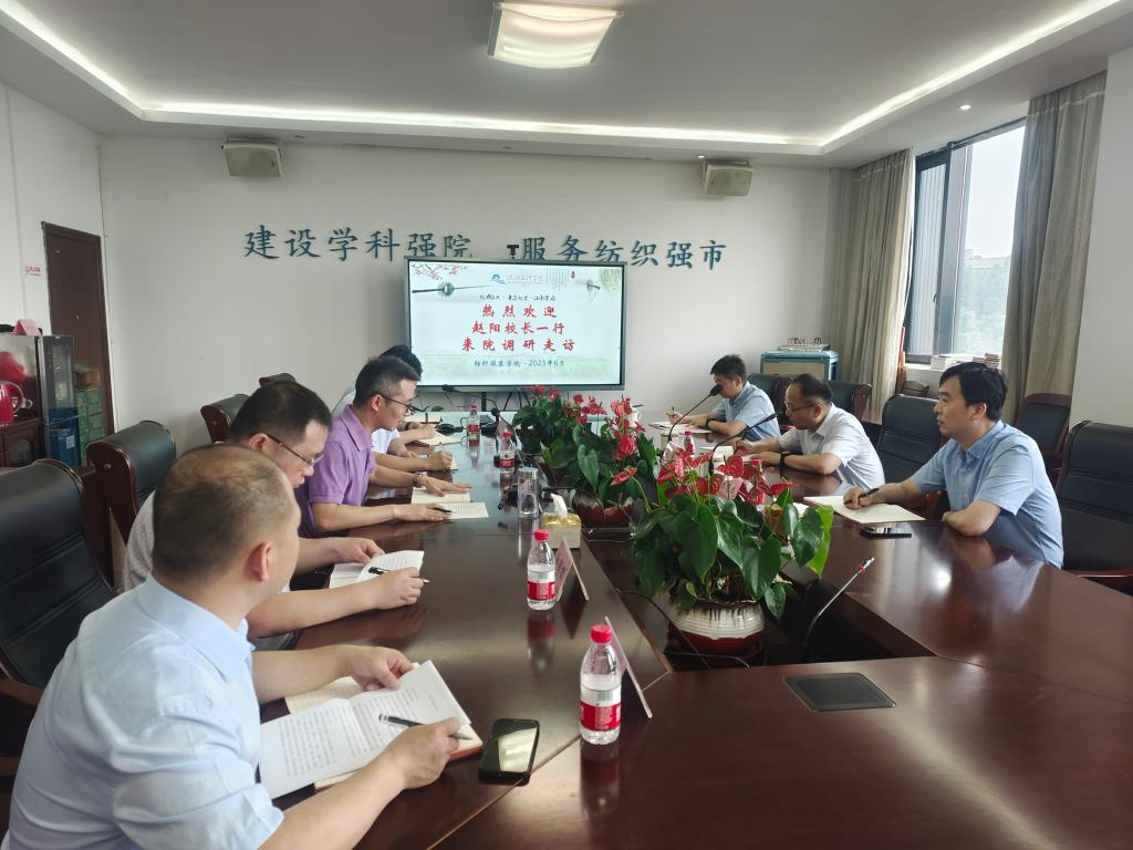 6月13日,校长赵阳一行赴纺织服装学院走访调研。办公室等职能部门负责人陪同,纺织服装学院班子成员参加座谈会。