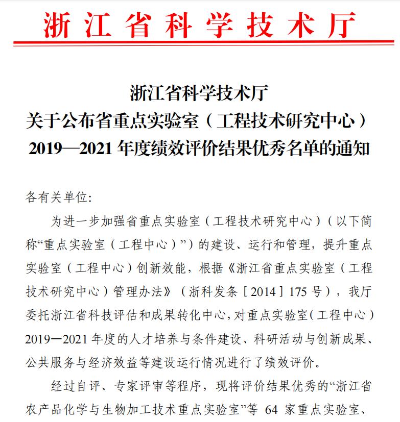 近日,浙江省科学技术厅公布省重点实验室(工程技术研究中心)2019-2021年度绩效评价结果。经过自评、专家评审等程序,我校“浙江省岩石力学与地质灾害重点实验室”绩效评价结果优秀。据悉,全省267家重点实验室和74家工程技术研究中心参加本次绩效考核,优秀率不超过20%。