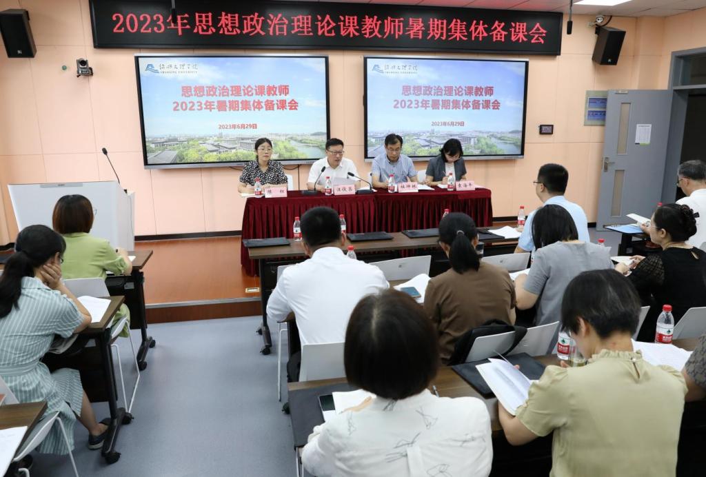 会上还播放了学校“鉴湖学者”讲座教授、北京师范大学思想政治工作研究院院长、博导冯刚教授讲座《思政热点问题研究和思政学科展发展》视频;组织大中小学思政课教师围绕习近平新时代中国特色社会主义思想课程建设工作开展协同教研,进行《大中小学思政课一体化协同教学案例集》《大中小学思政课一体化协同科研论文集》相关工作部署及研讨。各教研室围绕构建学校“大思政课”建设新格局,本课程课堂教学、社会实践、主题报告、考核评价等创新思路与举措,组织参加2023浙江各课程暑期备课会教学比赛等开展集体备课研课。